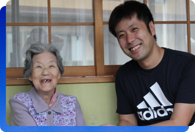 東日本大震災の後、家族で宮城県に避難していて、地元の須賀川市に戻ってきました。これまでに、様々な介護事業所を経験してきましたが、実は、職場としての『グループホーム』に、いいイメージがなくて。その最大の理由は、ご飯作りがあること。これは、特に男性は不安だと思うんです。だけど、実際はスタッフみんながサポートしてくれるので、思っていたより大変じゃありませんでした(笑)ここは入居者さんもスタッフもみんな和気あいあいで、なんか楽しい場所です。