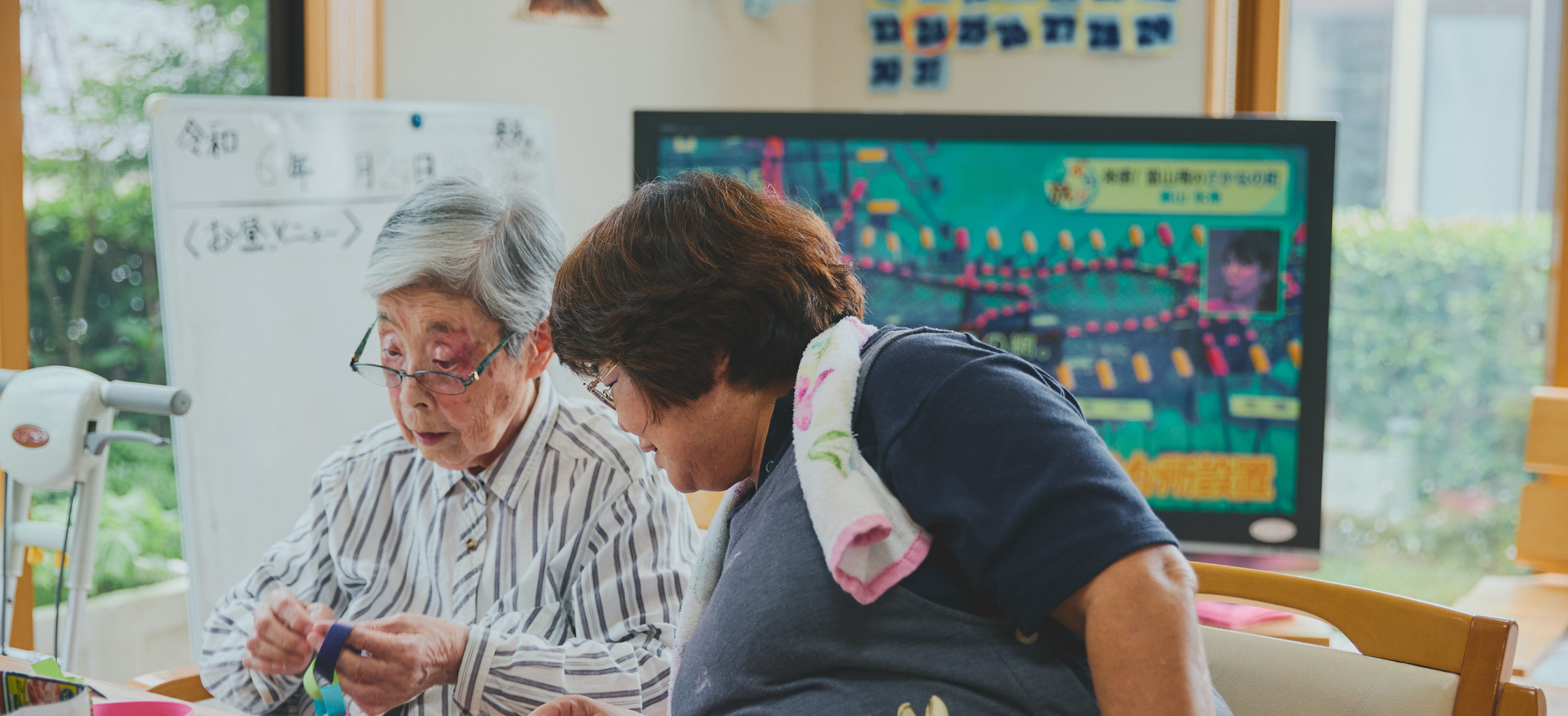 認知症の方を専門に受け入れるデイサービスです。認知症ケアでは、いつもの場所や顔なじみの関係が大事。日々のあいさつや対話の積み重ねから信頼が生まれるのは、普通の人間関係と司じです。また、私たちは、その方の記憶や感情を大事にします。「懐かしい」「楽しい」という心の動きが、生活にハリをつくり、気力を高めます。