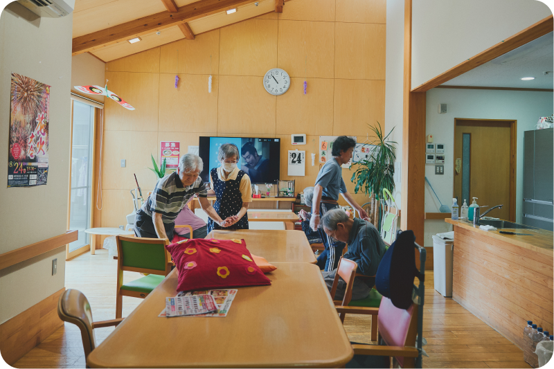 『紡』のある須賀川東部は、のどかな田園地帯に元気な商店街が残る土地。認知症という病気があっても、住み続けてきたこの地域で、自分の暮らし・自分の人生を送って行けるように支援することが役割だと考えています。その方の、小さいけれど大事な習慣は、日常の様々な場面で関わりながら、言葉の端々から波み取るもの。その方が暮らしてきた環境や歴史を知ると、さらに深く理解できます。