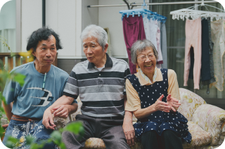 入居した後も、ご自宅の近くまで散歩に行ったり、お墓参りや季節行事に参加するなど、地域の中で暮らし続けていてだきたい。商店街を歩いてあちこちで話しかけられる姿を目の当たりにすると、この町で過ごしてきた時間を実感します。私たちは、そういう顔の広さや元来のキップの良さなど、その人らしさも大事にしたいと考えています。 また、豊心会のグループホームには面会できない時間がありません。仕事帰りに「ただいま」と顔を見に来る息子さんがいたり、夕飯を食べて部屋に泊まるご家族がいたり。ご近所さんやスタッフの子どもが遊びに来て、利用者さんとおしゃべりするのも普通の風景です。